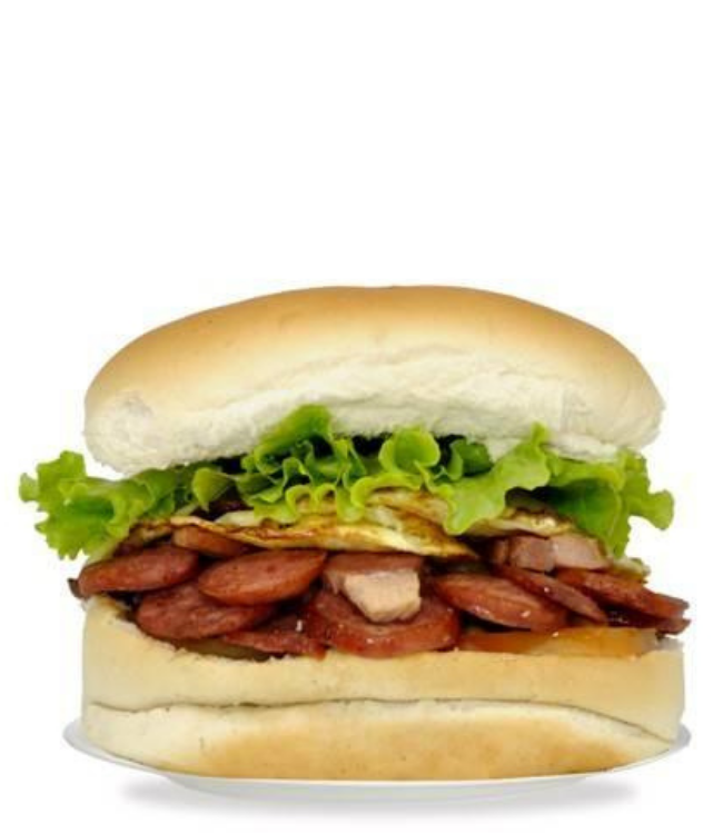 Pão, Calabresa, Queijo, Presunto, Salsicha, Bacon, Ovo, Alface e Tomate