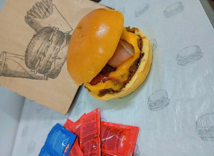 Um Delicioso Burger de 150g , molho de barbecue, Queijo Cheedar e Bacon Crocante